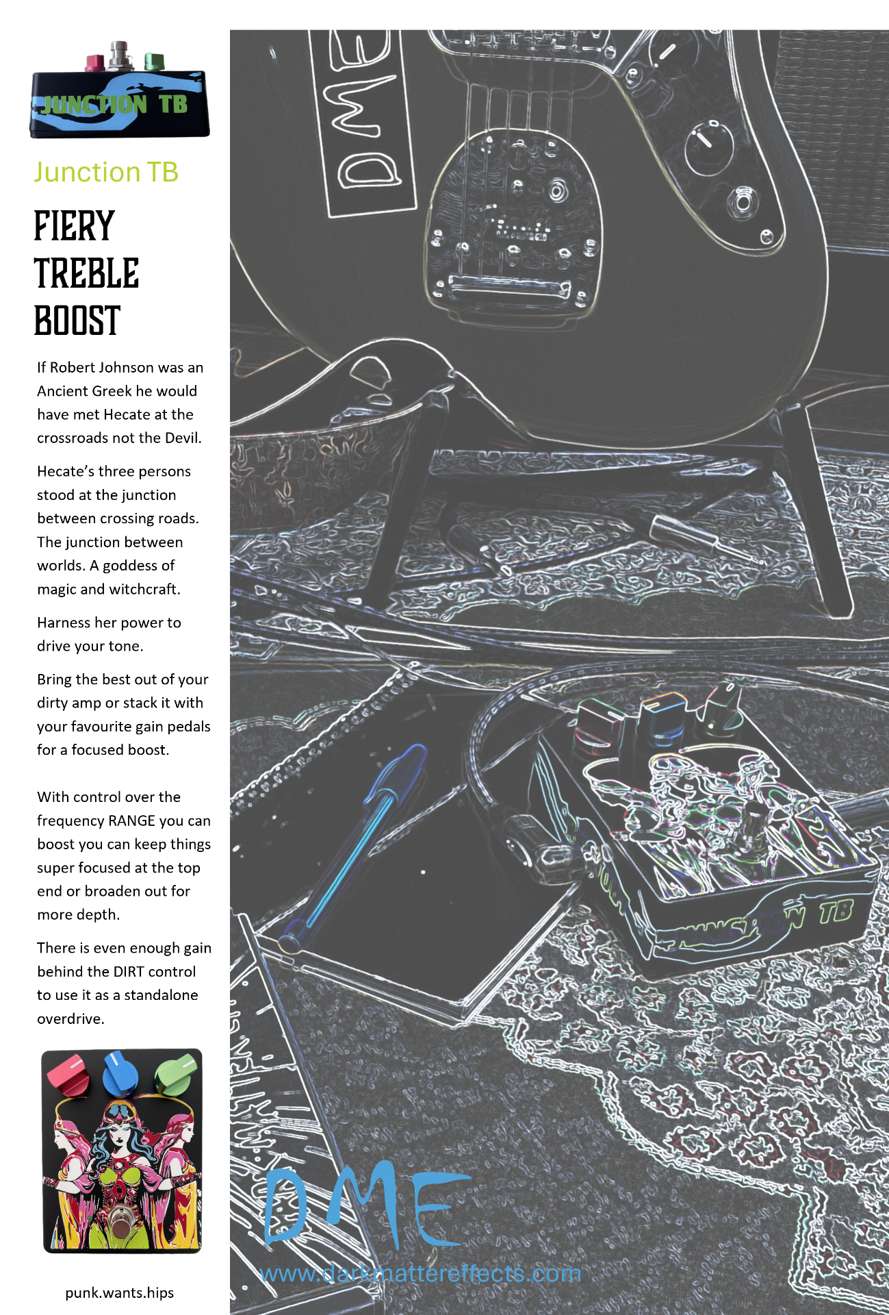 Unleash her power through your guitar with this fiery Treble Boost.