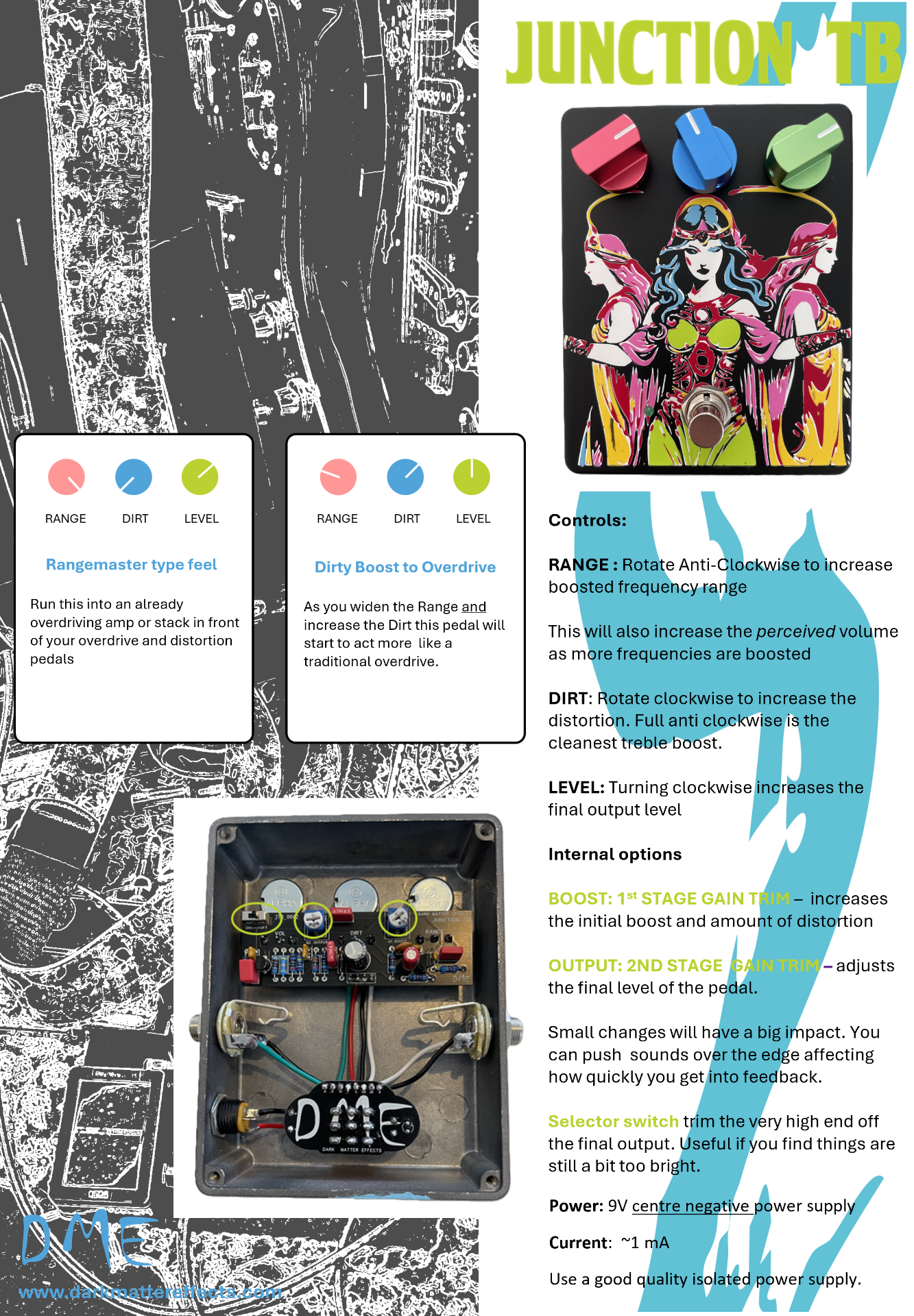 As you widen the Range and increase the Dirt this pedal will start to act more like a traditional overdrive. Super Flexible.